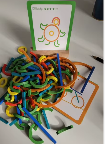 Renkli çubuk ve halkalarla oluşturulan her şekil, minik eller için yeni bir keşif fırsatıdır. Eğlence, öğrenme ve beceri gelişimi tek bir sette buluşur.
